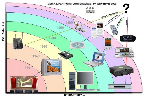 大約從 1995 年左右,就陸續有人在討論所謂“數位匯流”,在不同的使用情境之下,我們還是會需要很不一樣的數位裝置 — 光是螢幕大小就有好多種選項,音響效果、攝影機,都需要不同的配套。
