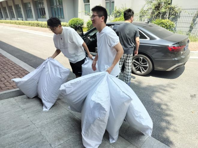 在入住過程中,難免會遇到一些小問題。針對有的同學對宿舍各類功能使用不太熟悉。工作人員們得知情況后,迅速響應,第一時間聯系維修人員解決問題,同時親自上手幫助同學們整理內務。此外,為了讓同學們更好地適應暑期集訓生活,工作人員還貼心地分發了各類防暑降溫的飲料水果,讓同學們對接下來的生活學習更有信心。