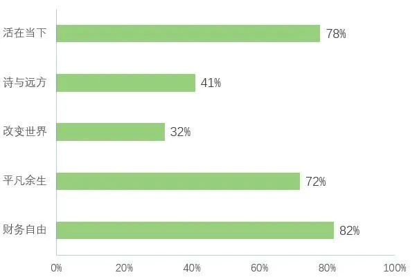 在調查顯示中,82%的程序員的終極理想是實現財務自由。除了暴富夢,不少程序員的想法較為現實,分別有78%和72%的程序員選擇活在當下和平凡余生。