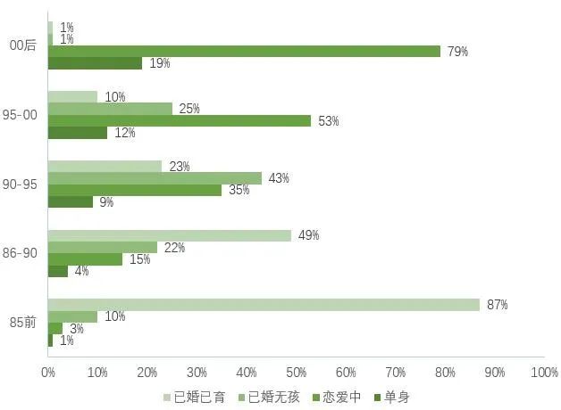 數據顯示,79%的00后程序員已經脫單,在90-95年之間出生的程序員中,有66%的人處于戀愛或結婚狀態。有一半年齡在35歲左右的程序員已經組建了美滿的家庭,擁有妻子和孩子。