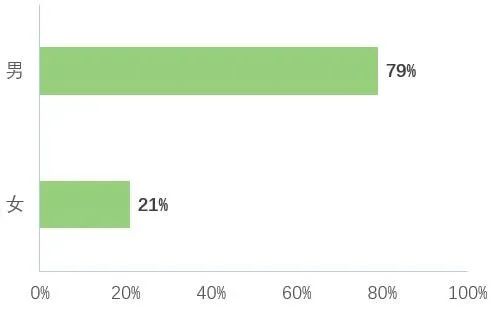 在程序員群體中,男性占比79%,女性占比21%,呈現出明顯的性別不平衡現象。