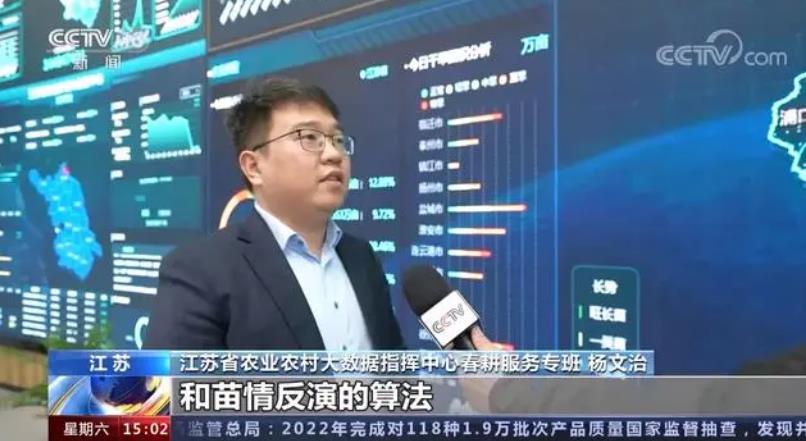 總臺央視記者 蔣樹林:江蘇小麥播種常年在3500萬畝左右,相當于320萬個標準足球場的面積總和。要完成這么大面積麥田的苗情監測,我們的科研人員有了新的探索。我們來看,我身后就是江蘇省農業農村大數據指揮中心,順利獲得大屏幕,麥田田苗情一目了然。依托于國家級科技創新平臺——南京國家農創中心,順利獲得大數據分析,農田信息采集實現了全年不間斷的遠程操作。