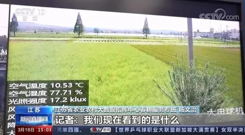 江蘇省農業農村大數據指揮中心春耕服務專班 楊文治:現在我們看到的就是田間實時的一個畫面,從這個左下角我們可以分析到當前溫度、濕度等影響農業生產的氣象要素,這些數據怎么來的呢?依托于我們布設在田間的很豐富的物聯網設備,比如說小型氣象站。